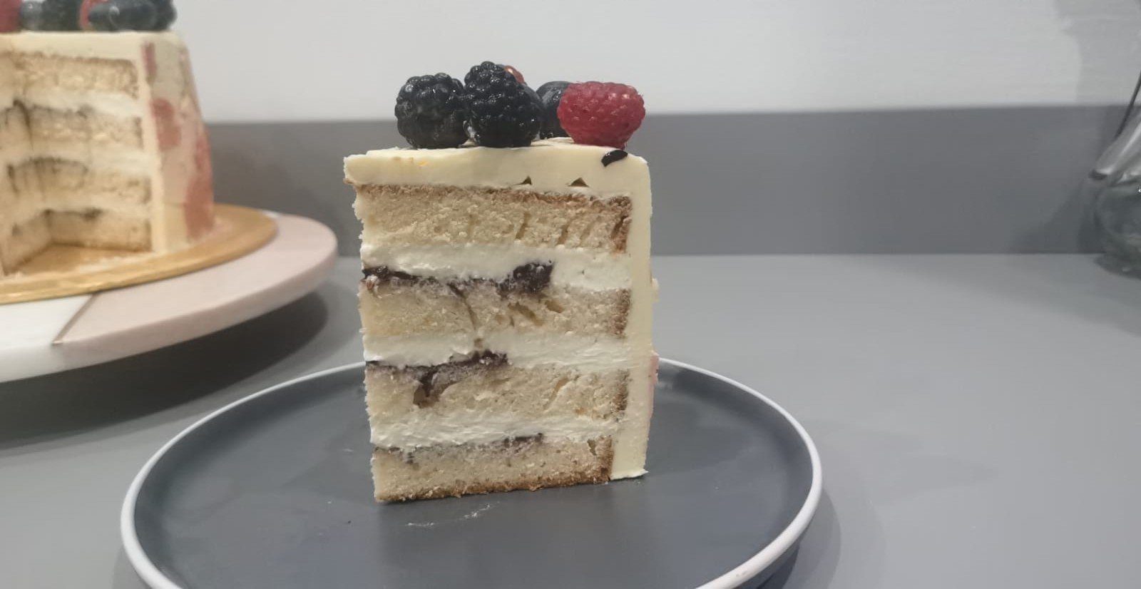 أي كيفية إضافة حشوتين مختلفتين داخل نفس الطبقة (مثل حشوة التوت مع الكريم تشيز) مع الحفاظ على ثبات الكيكة وتوازن النكهات